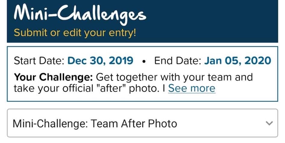 From Monday-Sunday, 10/21-10/27, the team needs to upload a “before” photo. This will clinch one of the size mini-challenge ribbons.