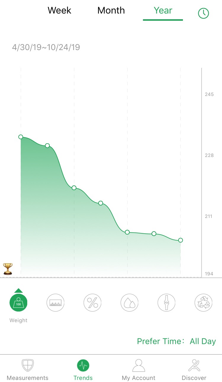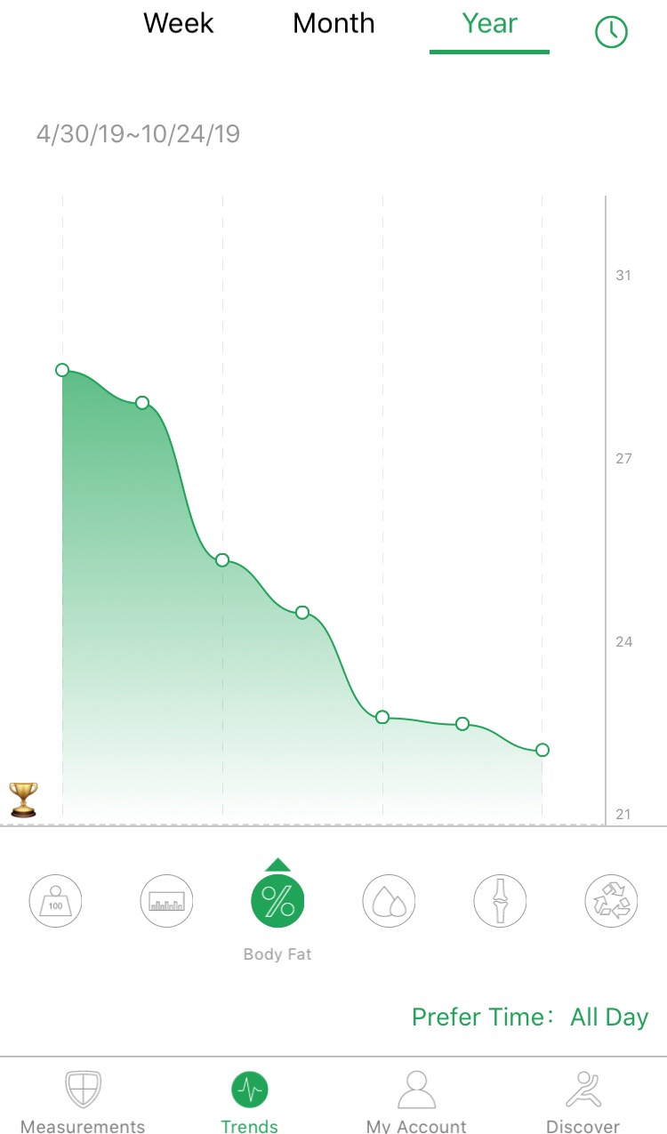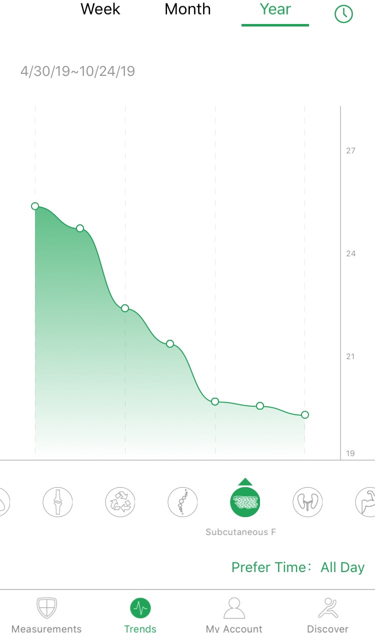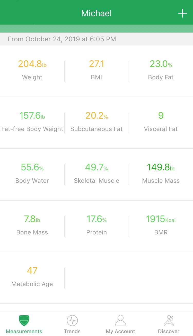 Generally, things have been trending more favorably over time. I have lost a lot of weight since spring—but I have been losing more fat then muscle, which is what I want.