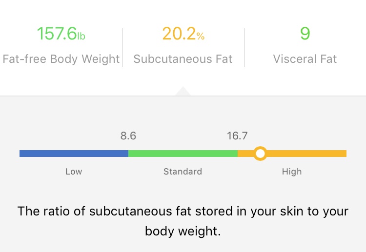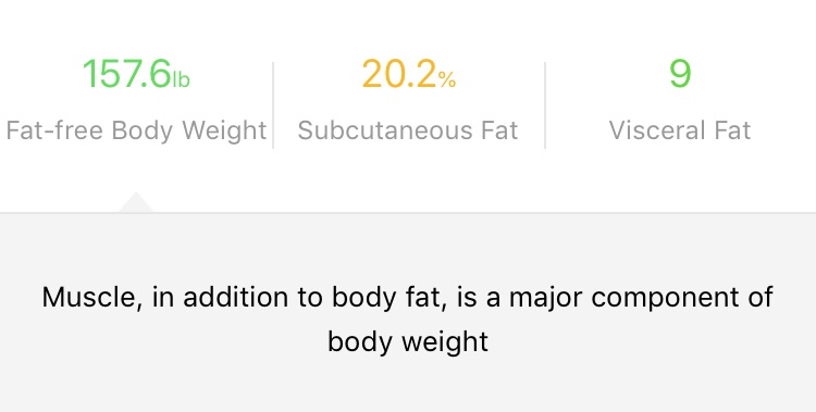 The ES-20M has the capability of measuring body resistance and will figure out your fat percentages for you. I don’t know how accurate it is but I have been losing fat as well as weight since Easter.
