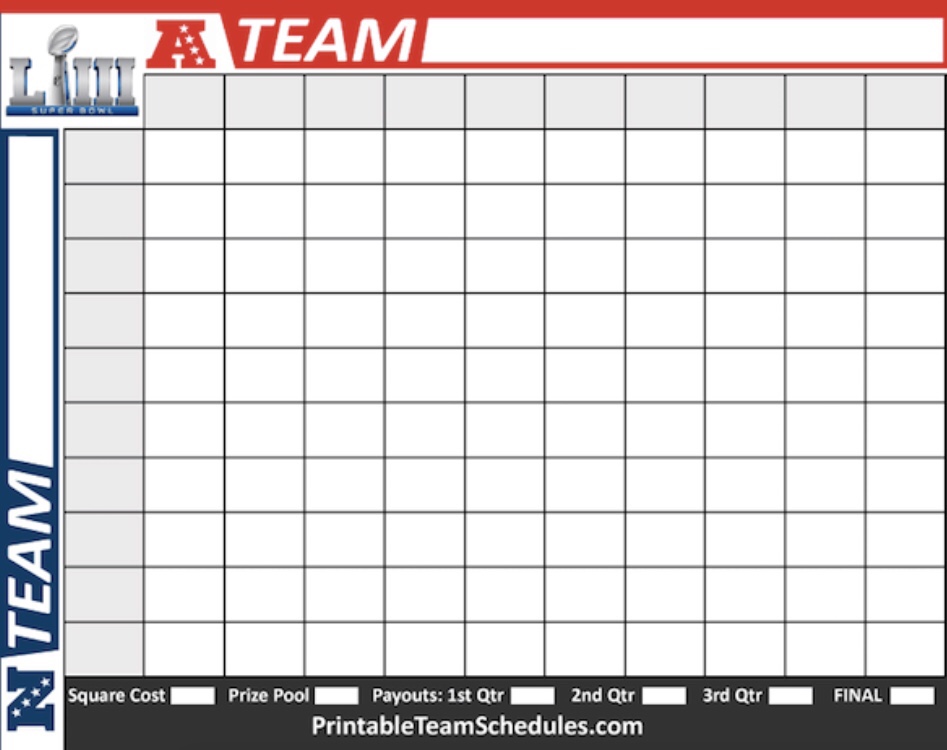 I’ll do a form of Super Bowl Squares. I’ll put $20 in for everyone who signs up and gets ahold of me and wants in. I’ll randomly divide the squares up amongst the players.
