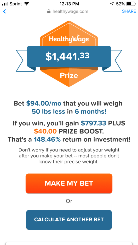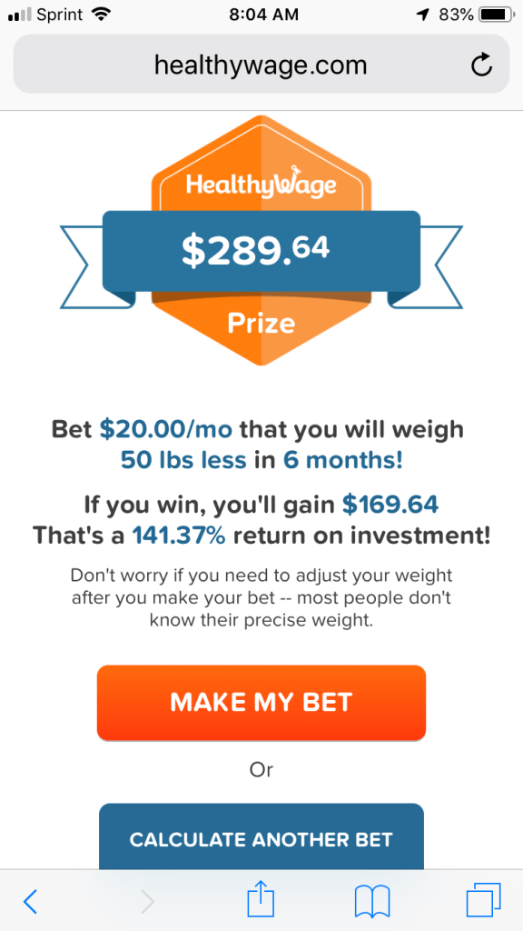 The final step is to enter the Heathy Wage website—using the referral link—and sign up for the wager. Here’s the prize offer: