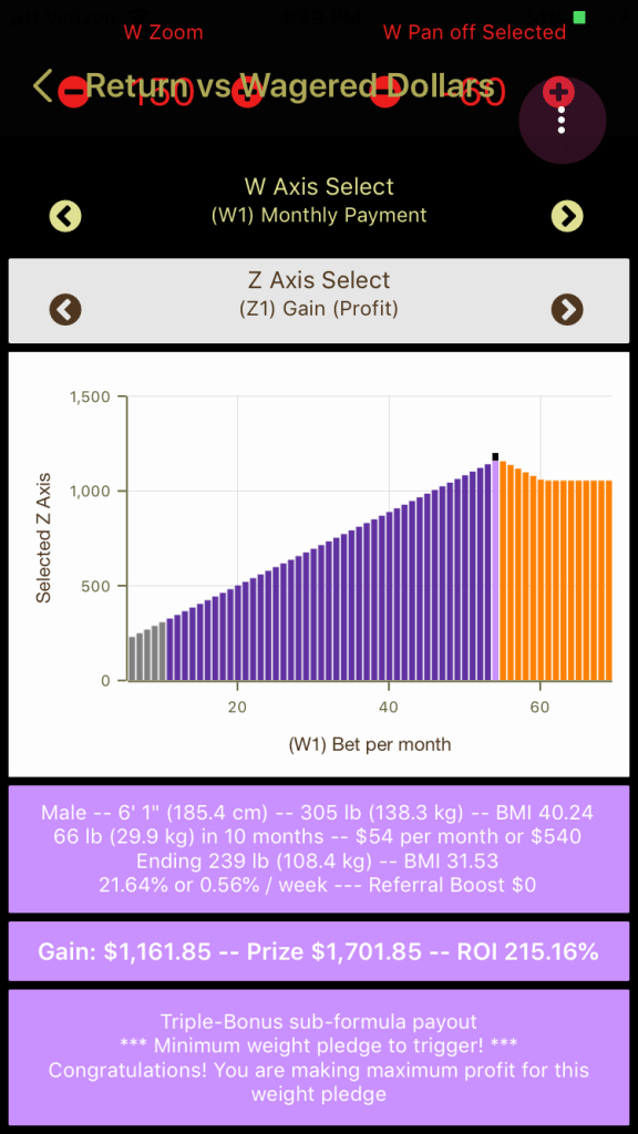 This is on the Return vs Wagered Dollars Page—when you know how many pounds you want to lose and how many months you will do it in, and want to maximize your profit.