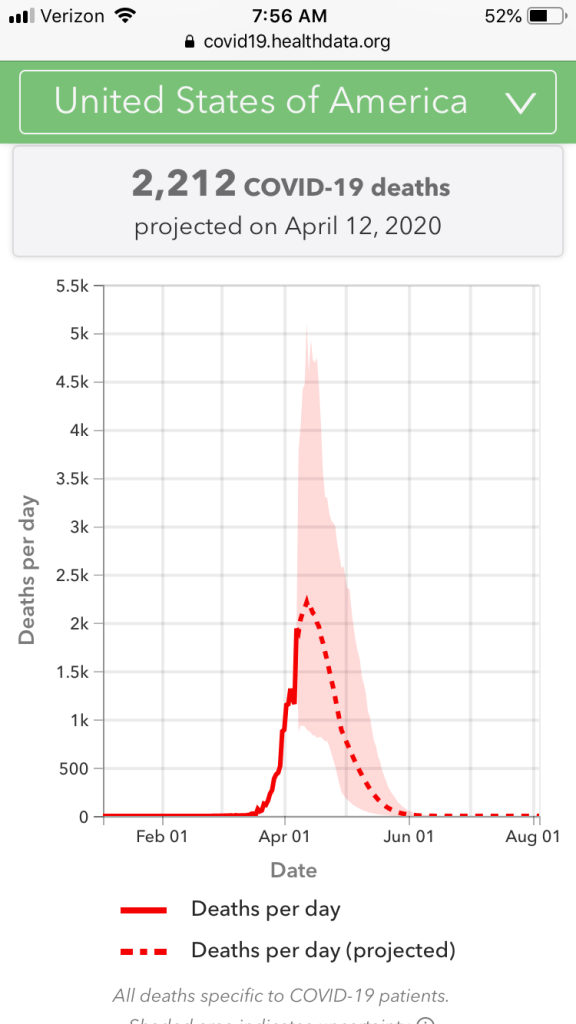 They are predicting peaks in 2 weeks and mortality ramping down through May.