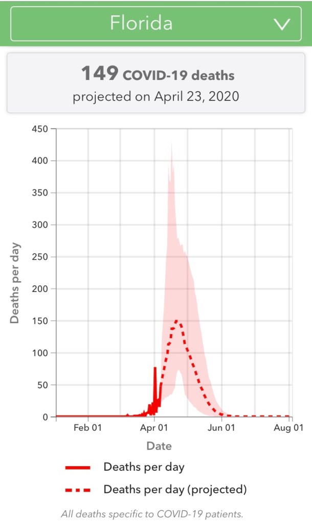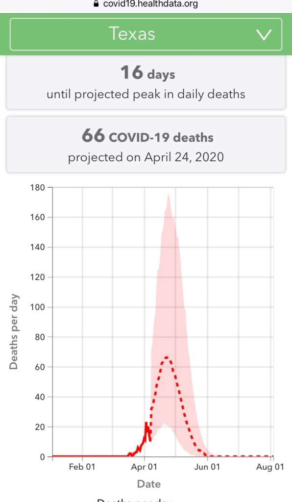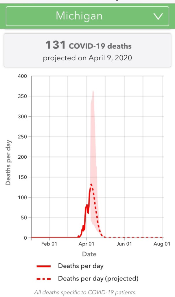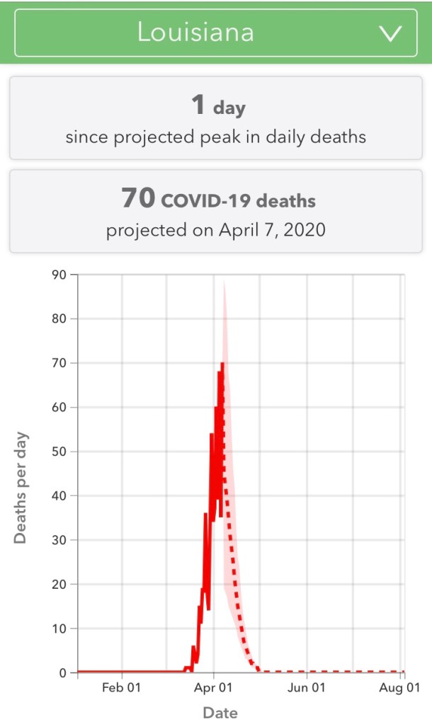 So on Maundy Thursday New York and Michigan will peak, and Louisiana peaked yeaterday, according to the model. But all of them drop to zero death by May 1
